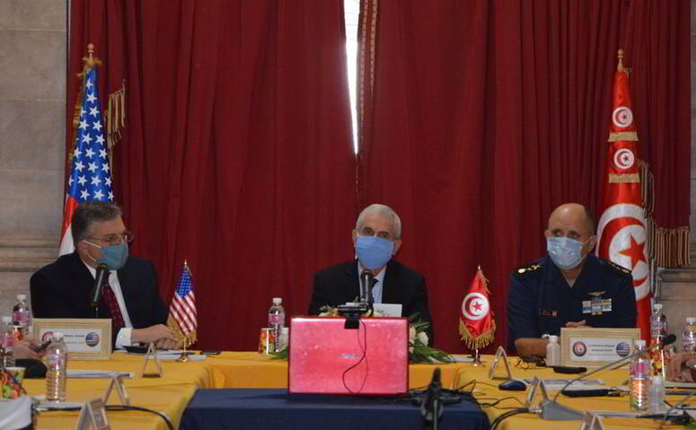 افتتح وزير الدفاع الوطني إبراهيم البرتاجي اليوم الثلاثاء 06 أكتوبر 2020 أشغال اللجنة العسكرية المشتركة التونسية الأمريكية في دورتها 34 بتونس وذلك عبر تقنية الفيديو عن بعد، بحضور سفير الولايات المتحدة الأمريكية بتونس ووفدين عسكريين رفيعي المستوى من البلدين.
