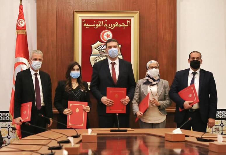 وأمضى الاتفاق عن الطرف الحكومي رئيس ديوان رئيس الحكومة المعزّ لدين الله المقدّم، وعن الهياكل القضائية، كل من رئيسة نقابة القضاة التونسيين أميرة العمري، ورئيس اتحاد القضاة الإداريين وليد الهلالي، ورئيسة اتحاد قضاة محكمة المحاسبات ريم حسن.