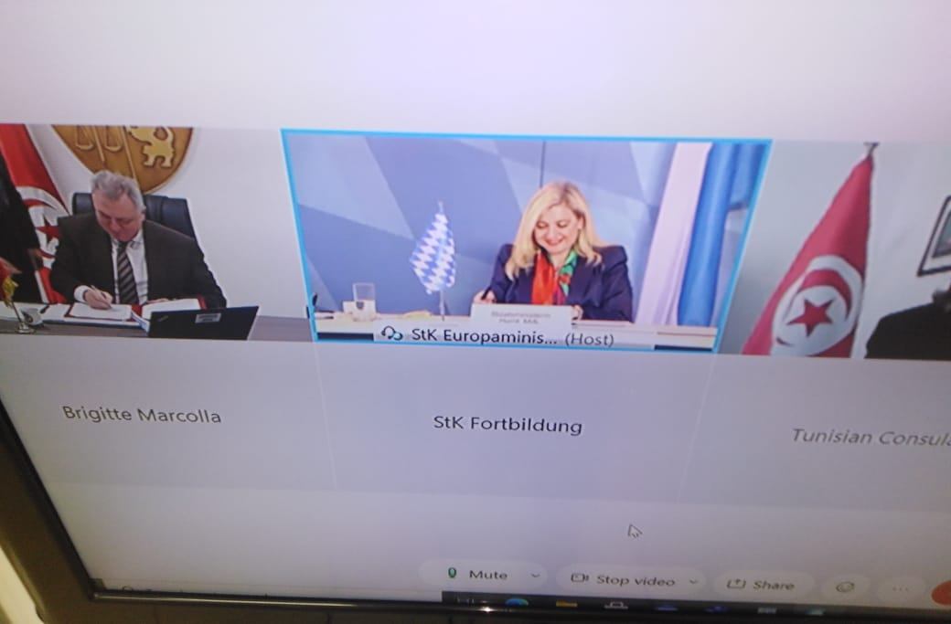وقع وزير الإقتصاد والمالية ودعم الإستثمار علي الكعلي صباح اليوم عبر آلية التواصل عن بعد و Melanie HUML، وزيرة الشؤون الأوروبية والدولية لمقاطعة بافاريا الألمانية وبحضور حنان التاجوري سفيرة تونس بألمانيا وقنصل تونس بمونيخ محسن السباعي، على برنامج عمل بين الجمهورية التونسية ومقاطعة بافاريا للفترة 2022-2019.