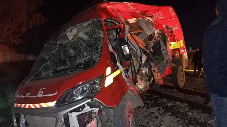 إصابة ثلاثة أعوان حماية مدنية في حادث اصطدام سيارة إسعاف بقطار بمنطقة قرمبالية