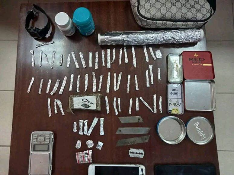 تمكن ليلة أمس أعوان فرقة الشرطة العدلية بالسيجومي وأعوان مركز الأمن الوطني بحي هلال بعد اجراء مداهمة ناجحة باحد المنازل بحي هلال من محاصرة وايقاف مروج مخدرات وحجز كميات هامة من صفائح الزطلة وكميات هام من قطع المخدر في لفافات من الألومنيوم، و اقراص مخدرة , ميزان، وآلات قص(لام)، وهواتف جوالة ولفافة كبيرة من الاليمنيوم تم حجزهم.