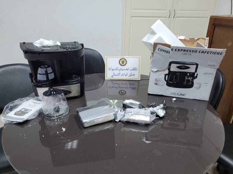تمكنت مصالح الديوانة بميناء حلق الوادي الشمالي من حجز كمية من مخدر الكوكايين مخفية بإحكام داخل آلة لطهي القهوة داخل أدباش مواطن تونسي مقيم بالخارج قادم من ميناء مرسيليا حيث كان المشتبه به مرفوقا بأفراد عائلته على متن سيارة ذات ترقيم أجنبي وقد تشكك أعوان الديوانة المكلفين بالتفتيش في محتوى ادباش المسافر المذكور وبتمريرها على جهاز الكشف بالأشعة تبين وجود أجسام غريبة داخل آلة لتحضير القهوة مغلفة وتبدو كأنها لم يتم استعمالها بعد.