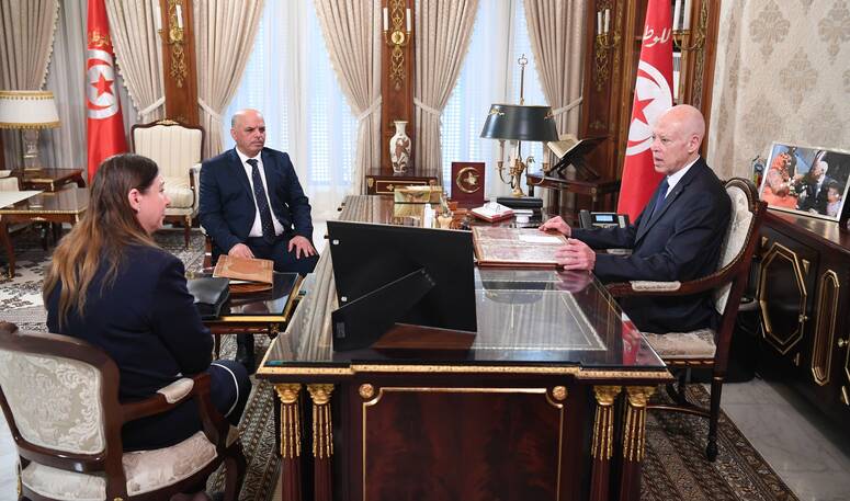 استقبل رئيس الجمهورية قيس سعيّد، مساء أمس، وزير النقل رشيد عامري، وحليمة خواجة، المكلفة بالإدارة العامة للخطوط الجوية التونسية، في اجتماع خصّص لبحث أوضاع الناقلة الوطنية واتخاذ إجراءات عاجلة لإنقاذها.