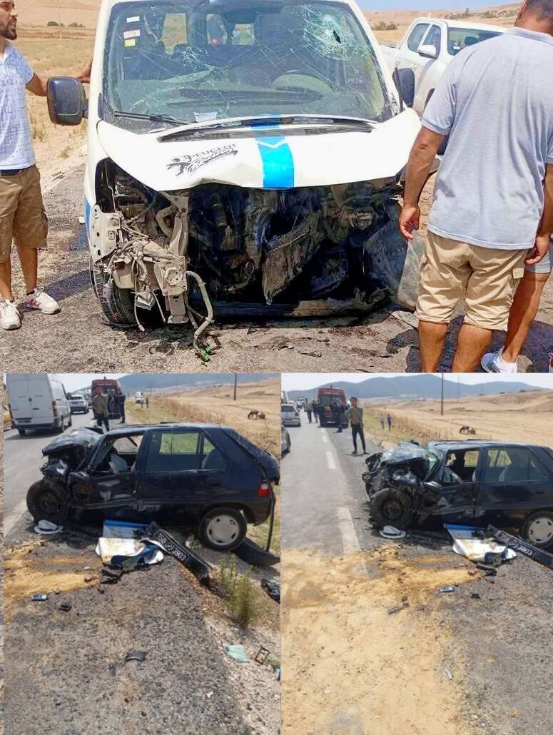 وقد وقع الحادث على مستوى منطقة الدار الحمراء إثر تصادم عنيف بين سيارة لواج وأخرى عائلية، نتيجة مجاوزة خطيرة قام بها سائقا السيارتين، وفق شهادات متطابقة لعدد من المواطنين.