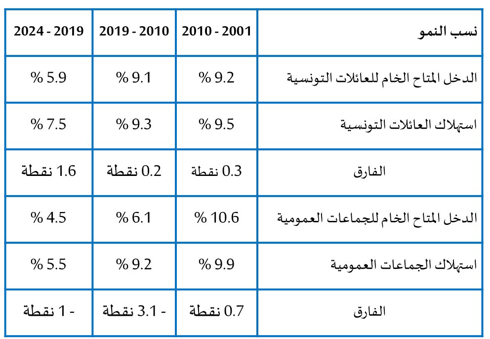 ويرجع ذلك إلى اتّساع الفارق بين نمو الدخل (%5.9) ونمو الاستهلاك (%7.5) خلال الفترة 2019–2024، ما يعكس تدهورًا واضحًا في القدرة الشرائية وتراجع جودة المعيشة، حتى لدى شرائح من الطبقة المتوسطة.