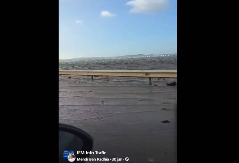 ارتفاع منسوب مياه بحيرة تونس يغمر جزءًا من طريق تونس–حلق الوادي