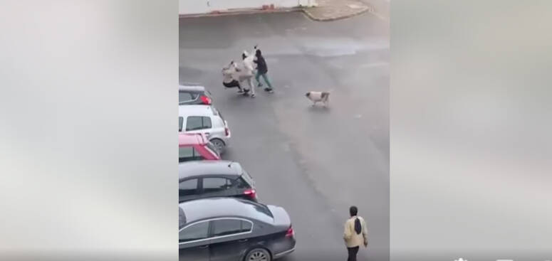 وتبدو الضحية في المقطع وهي تطلب النجدة، فيما لم يتبيّن من التسجيل تدخّل فوري من قبل المارّة.