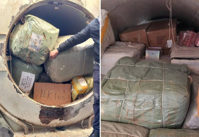 وأوضحت، في بلاغ صادر الثلاثاء، أنّ دورية تابعة للحرس الديواني تولّت ضبط شاحنة ثقيلة تحمل ترقيمًا منجميًا تونسيًا ومزوّدة بصهريج، ليتبيّن إثر تفتيشه وجود مخبأ مهيّأ يحتوي على ملابس جاهزة وأحذية رياضية وسجائر إلكترونية ومصوغ مزيّف وكماليات هواتف جوالة.