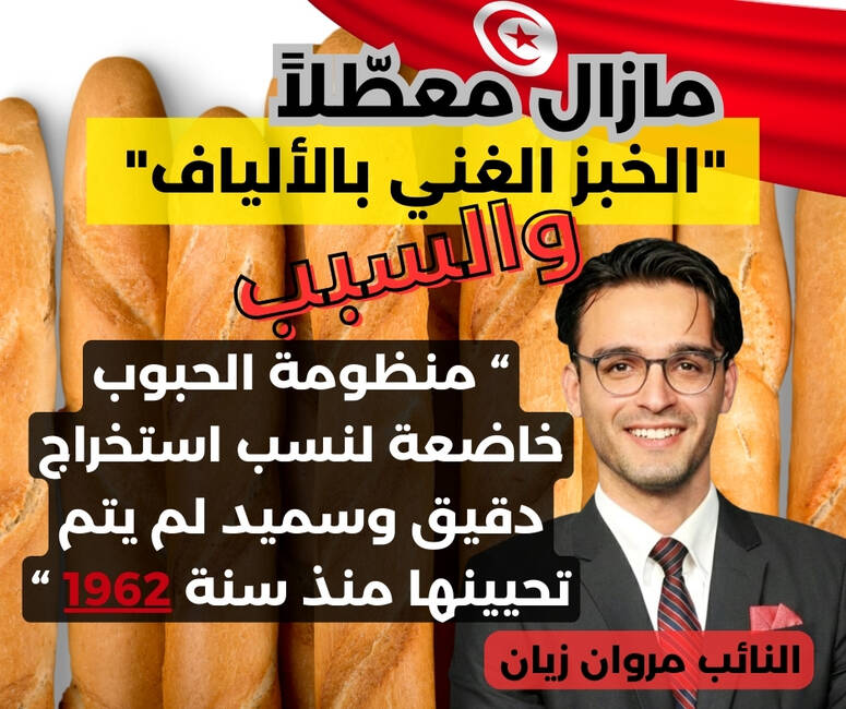 وخلال جلسة عامة انعقدت يوم 27 فيفري 2026 بحضور وزير الفلاحة والموارد المائية والصيد البحري، أكد النائب أن الإشكال “لا يتعلق فقط بنوعية الخبز، بل بقرار استراتيجي يمكن أن يوفر للدولة التونسية شهراً كاملاً من مخزون القمح كل سنة”.