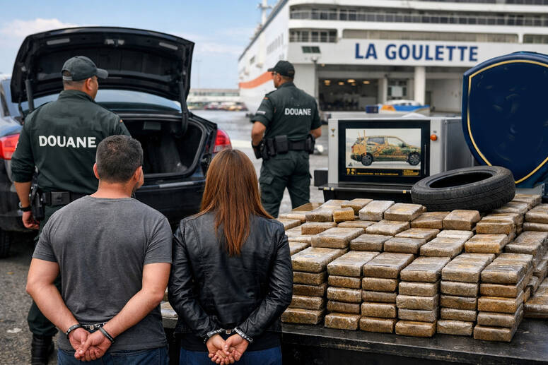 وتفيد المعطيات المتوفرة بأن أعوان التفتيش بالديوانة بميناء حلق الوادي اشتبهوا في أمر سيارة على متن باخرة قادمة من احدى الدول الأوروبية، وهي على ملك كهل اربعيني ترافقه فتاة في العقد الثالث من عمرها.