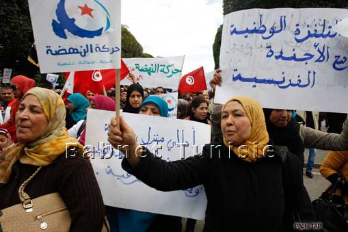 Cette marche, à laquelle ont, également, participé des partisans du courant salafiste, a été marquée par une présence policière massive sur toute l'avenue, a constaté l'agence TAP sur place.