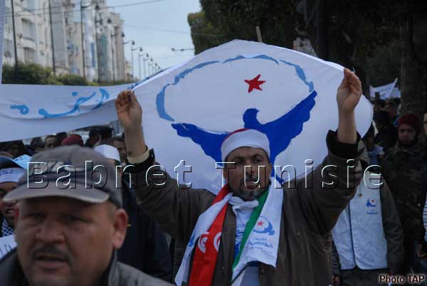 Le nombre des participants à la manifestation qu’a organisé Ennahdha aujourd’hui à l’avenue Habib Bourguiba a atteint les 60 milles.Selon les sources du ministère de l’intérieur, la manifestation qui a commencé à 14h avec 16 milles personnes seulement
