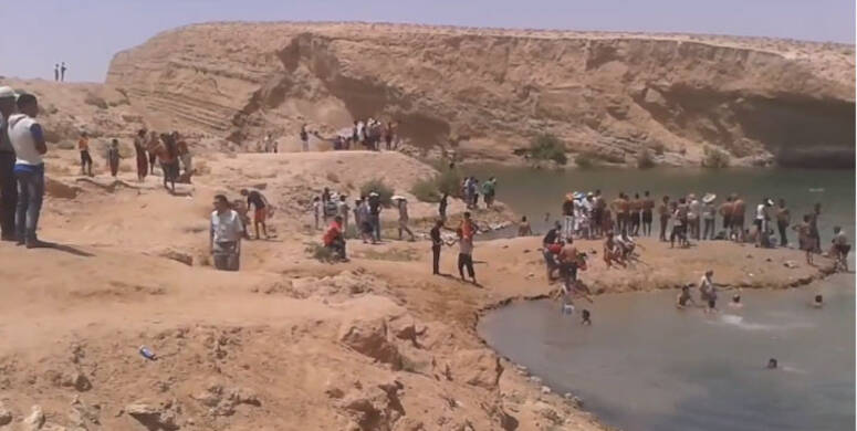 وقد تداولت صفحات التواصل الاجتماعي الفايسبوك فيديو البحيرة الجديدة وقيام الأهالي بالسباحة فيها.